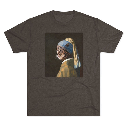 Cat with a Pearl Earring--a homage to Johannes Vermeer - Tri-blend tee