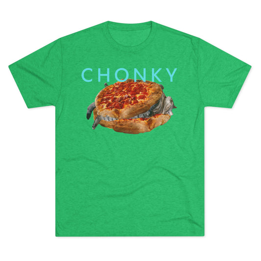 Chonky Cat Nappin Between Two Thicc Pizzas (OG vers) - cat shirt - Unisex Tri-Blend Crew Tee
